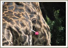 This was done simultaneously while treatment was being administered with 36mgs diprenorphine and 5mgs atipamezole (antisedan®) in one syringe given intravenously. The whole procedure from darting to revival took twenty minutes and the giraffe was set free without any complications.
