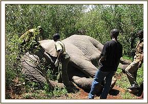 Treatment of a wounded elephant in Siana conservancy, Maasai Mara