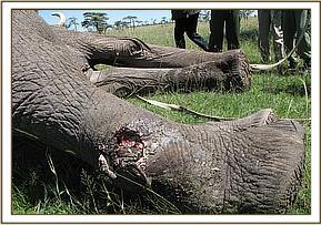 The missing tusks, multiple sharp object inflicted injuries highly suggest human involvement in the death of this elephant.