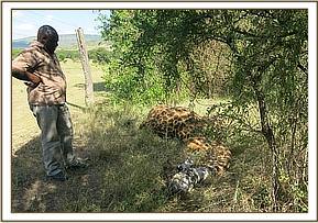 Carcass was found lying on left lateral recumbency position with both tusks retrieved by KWS and Mara Elephant Project Security team for save custody. The following were general observations made; • This elephant was in good body condition at the time of death with a body score of 4 in a scale of 1-5 where 5 is perfect and 1 poor. • There was no evidence of struggle before death at the scene of the incident. • Scavengers had already ripped some parts of the carcass opening up the abdomen. • The carcass was about 48 hours old and purification was beginning to occur. • Few first stage maggots and fly eggs were seen on the carcass. • A penetrating wound at the centre of the pinna on the right ear was observed • Three other penetrating wounds, one on the right thorax, one on the left flank and another on the posterior left thigh was also observed. All the wounds were less than four days old.