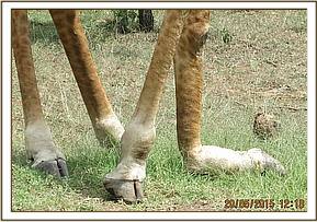 This was a compound fracture with the bones exposed. With the prognosis considered grave and to end further suffering of this giraffe, euthanasia was advised and effected.