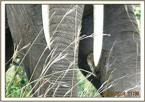 Restraint was achieved chemically by use of 15mgs Etorphine hydrochloride delivered in a 1.5ml Dan inject dart from foot. It took seven minutes for the drugs to take full effect with the elephant assuming left lateral recumbency. She appeared to have been nursing as the teats were slightly engorged. The calf however, was not with her and was assumed to be among the rest of the herd.