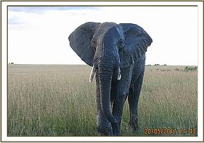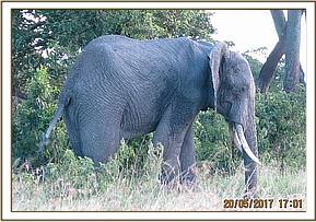 This bull was seen with a limping gait around the Keekorok area in the Reserve by the Masai Mara Rhino warden. He called the veterinary unit for assessment and possible intervention. The elephant was found alone along the road browsing and clearing favouring the right front leg. The limb appeared slightly swollen and flexed at the carpus.