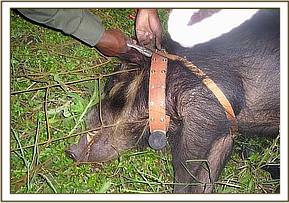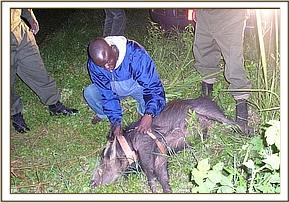 Kenya Wildlife Service (KWS) veterinary department in collaboration with International Livestock Research Institute (ILRI) initiated African swine fever (ASF) disease surveillance in Ruma National park since November, 2007. The surveillance work has been conducted in the park three times since its initiation last year. During the month of November, 2008, two bush pigs were captured at night using capture nets one was fitted with a GPS collar and blood and tissue samples collected from both the pigs and released. The operation lasted for 12 days and it was successfully conducted.