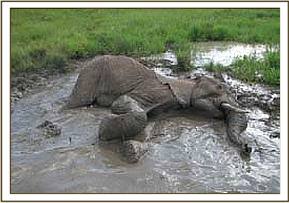 An elephant with a fractured leg in Mara near Makari bridge