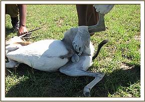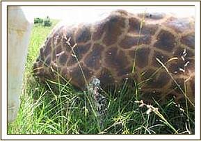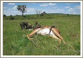This was an adult male giraffe that was sighted near Keekorok lodge by County council rangers and reported to the veterinary unit in Mara, it had an arrow head sticking on the back. It had stayed with this for sometime and the wound created had developed some infection.
