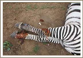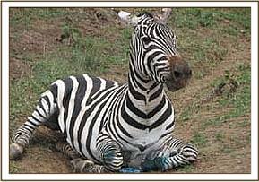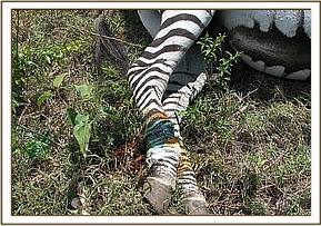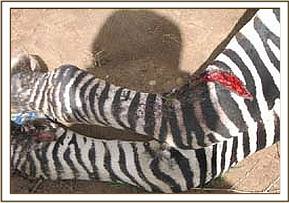 The zebra was located in Game sanctuary with a deep cut on the right front limb, the wound was still fresh with blood oozing out, the cause of the injury was not ascertained. The zebra was the captured normally by use of chemical immobilization and treated using antibiotics, antinflammatory drugs and topical application of tincture of iodine. It was then revived from anaesthesia after the treatment. It had better chances of healing since the wound was still fresh and treated at the right time before it developed infection.