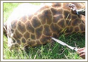 Treatment of a giraffe with an arrow head on the back