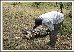 The warden in charge of Masai mara national reserve informed the mobile veterinary team that his patrol team had come across a dead female leopard at Olkiombo area. He requested the services of the veterinary team to ascertain the cause of death.