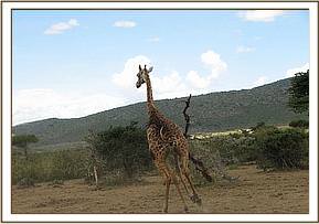 The giraffe was in good body condition though agitated. She was in a herd of about ten giraffes in a relatively open area. An arrow could be seen sticking out from lateral surface of its right limb. She had a slight limp.