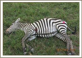 This zebra was seen by the Mara Triangle Patrol Rangers who called to request the Vet Units help in de-snaring and treating the animal. Zebra snaring is now becoming rampant in this area.