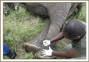Other treatments included parenteral administration of 15000mgs Amoxicillin antibiotic to counter sepsis. The whole procedure took about 20 minutes. Tissue and blood sample was collected from this elephant.