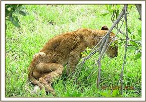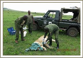 The lioness was made comfortable prior to examination. She had multiple bite wounds which had been recently inflicted. All the wounds were debrided with Hydrogen peroxide and swabbed before rinsing with clean water and applying tincture of iodine. Cloxacillin ointment was then infused into all the wounds. Additional treatments include parenteral administration of 3000mgs Amoxicillin antibiotic, 16mgs Dexamethasone sodium anti-inflammatory and 80mgs Ivermectin.