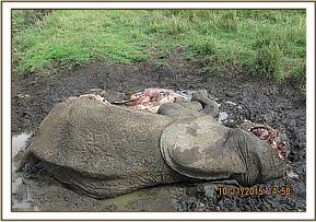 - The carcass had been pulled to a distance about two hundred meters from the road away from the public and partly submerged in a pool of water.