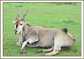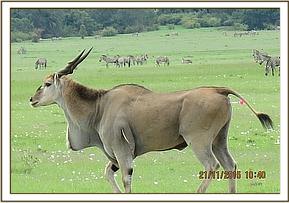 The eland was isolated from the rest of the elands who were grazing on a plain field. He had taken cover in a small thicket and appeared to be in pain. An arrow shaft could be seen sticking from his left shoulder which appeared severely swollen.