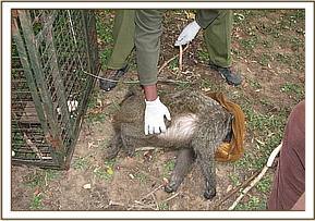 In Maasai Mara one baboon and 1 vervet monkey were also trapped using a trapping cage then sedated using 30mgs and 70mgs of ketamine Hcl respectively, blood samples were collected and tested for bovine tuberculosis infection using Primate Stat-Pak® test. Both the vervet and baboon tested negative with Primate Stat-Pak® test.