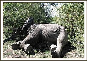 Euthanasia of an elephant with fractured legs This was a 4-year old female elephant that had been knocked down by an over-speeding vehicle along the Narok-Maimahiu road near Ntulele trading centre. It sustained a complete fracture right femur and right humerus bones. The rest of the family members tried to support it but they could not manage and the elephant was left lying in a thicket by the road side. Examination and euthanasia Both the legs were palpated and flexed to ascertain the viability of the legs, it was realized that there were no chances of recovery from the fractures and the elephant was humanely euthanized by one gun shot through the brain. The tusks were then recovered and taken to KWS custody in Narok.