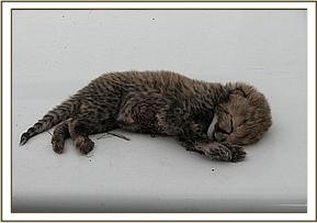 Warden Talek gate reported having seen an abandoned cheetah cub amongst other three dead cubs. The three cubs had been attacked and killed by lions and this particular cub was lucky to survive the attack without any injury. The mother cheetah was chased away thereby abandoning the cubs. By the time of arrival the pride of lions were a few meters from the cubs.