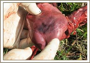 - The carcass appeared to have been in a fairly good body condition before death though moderate ascitis was evident