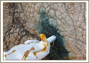 After the first wound was treated, the elephant was flipped over using ropes and a vehicle in order to assess the wound to the left flank. This was a deep wound that accessed the peritoneum and the left kidney. No offending object was retrieved as probing yielded nothing. The wounds were wiped with sterile swabs and disinfected with tincture of iodine before Penicillin and Streptomycin were infused. The wound was then packed with green clay. He was given 30000mgs Amoxicillin antibiotics and 5000mgs Flunixin meglumine anti-inflammatory all parenterally.