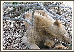 This young male is about three years old and was found relaxing a few meters from the camp in a small thicket. He moved with a lot of pain with wounds visible to his left hind leg.