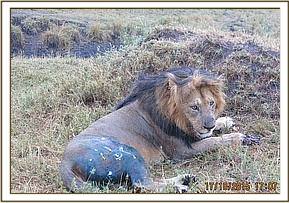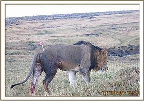 This big male christened Blackie and his equally big brother are frequently seen near double cross in MMNR. On the 17th October Blackie was seen with multiple bite wound injuries to his hindquarters by Governors Camp guides and MMNR rangers who called the Vet Unit for assistance. It was likely that he picked a fight with other males over territorial competition. His brother was nowhere to be seen.