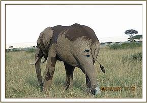 He was found alone browsing within the conservancy near Mara River. He was in good body condition with extensive elephant activity noted within the area. Other herd members had been there earlier.