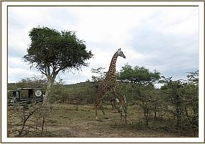 This giraffe was seen with an arrow sticking from the left side of his neck by Mara BushTops tour guides. They informed the mobile veterinary unit for intervention.