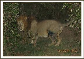 He was found lying in a relatively open area in company of the popular ‘Scar face’ male who belongs to the Marsh pride of lions. The wound on his thigh was relatively fresh and he appeared to favour his right front leg.
