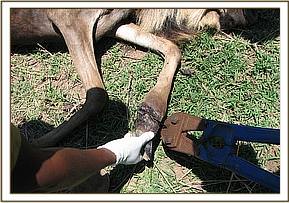 The wound was then cleaned with a lot of water, exudates and necrotic tissues squeezed out. Then further cleaned using 10% hydrogen peroxide draining all the accumulated pus and tissue debris, and later treated with a tincture of iodine and oxytetracycline spray.