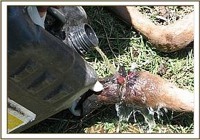 The wire snare was cut off using a wire cutter and the wound treated topically using 10% hydrogen peroxide and tincture of iodine. Blood samples were drawn from the jugular vein to be used for health monitoring and research purposes.