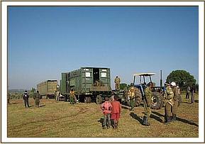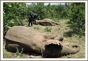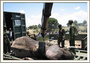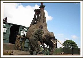 Translocation of elephants from Siyapei area to Masai Mara. A total of 46 elephants were captured by chemical immobilization and translocated to Masai Mara National Reserve in September, 2012. The translocation was meant to reduce cases of human-elephant conflict which are a threat to both elephants and human beings. In the recent past cases of human-wildlife conflict have increased in Narok area, this has been attributed to increase in human population, conversion of wild range land into agriculture and loss of habitat for animals. Most of the reported conflict cases in Narok are human-elephant conflict cases. Elephants are usually involved in human injuries, human deaths, crop destruction and other property destruction. The area is becoming unsustainable for wildlife conservation if the current trend of crop farming, charcoal burning and tree logging continues. In the first phase of translocation, 62 elephants were successfully captured and transported to Masai Mara during the month of September, 2011. During this second phase 46 elephants were successfully captured and translocated to Masai Mara.