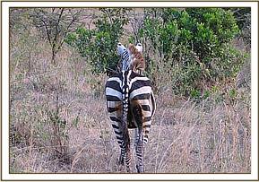 The zebra appeared weak and emaciated with a discharging wound on her right thigh. She was ambulating well despite the injury.