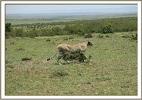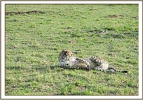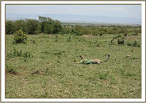 This cheetah was alone but appeared to have fed recently. The body condition was good save for Alopecia in some areas occasioned by mange. We found her relaxing under a shade.