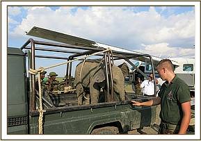 The reversal was achieved by administration of 6mgs Diprenorphine Hydrochloride Intravenously via the milk vein. She woke up after three minutes to join the rest of the members of her group who were patiently waiting for her.