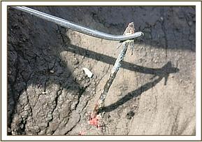 Examination revealed an arrow head lodged on the medial surface of the left forelimb just above the carpal joint. The arrowhead had been in place for not more than eight days with some sepsis setting up. This was a poisoned arrow recently lodged.