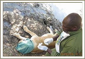He had multiple bite wounds inflicted by other lions that appeared deep with a big haematoma that was evacuated behind his left shoulder. All the wounds were debrided with Hydrogen peroxide, rinsed with clean water and disinfected with tincture of iodine. Cloxacillin ointment was also infused and topical Oxytetracycline spray applied.