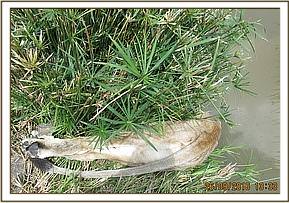 - This lion died with her head submerged in a river.