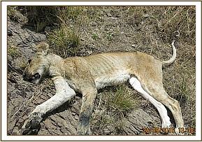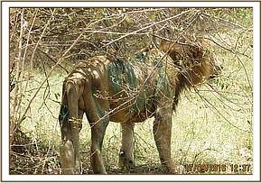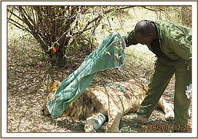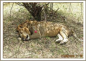 This lion was in a group of six composed of two males and four females and reported to us by the Masai Mara Reserve warden in charge of Talek sector. They had killed a buffalo and appeared to be harbouring some injuries.