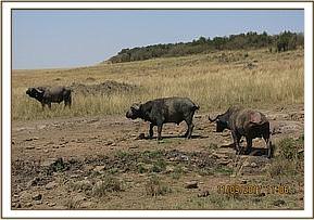 This old bull was seen with a plain shiny wire snare by the Mara Triangle Patrol rangers. The snare was loosely attached to his rare left leg. He was with two other lone bulls. His body condition appeared pathetic due to old age.