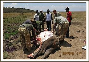 The recent straying having occurred weeks before this exercise where she spent several weeks outside Mara triangle before eventually coming back.For ease of monitoring, Mara Triangle Management, Mara Elephant Project and KWS teams decided to deploy a solar powered GSM/Satellite tag on the ear of this rhino.