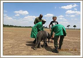 This baby had been seen wandering alone for some days by the Mara triangle security team. It was hoped he could find his family and eventually his mother. However, as days passed by, no family of elephants accepted him and a decision to rescue him was arrived at.