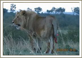 This lion was found lying close to a Lugga in good body condition. He had an injury on his right hind leg with part of his tail missing and with fresh injury. All the injuries appeared to have been inflicted by other lions possibly from territorial conflicts.
