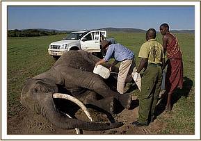 In May The David Sheldrick Wildlife Trust’s Mobile veterinary unit based in the Masai Mara treated an adult female elephant