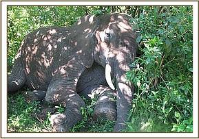 On 1st April, 2008, the elephant was reported to have greatly deteriorated and emaciated, the calf had also lost much of its body condition and the veterinarian was informed to assist. It was found next to Little Governors camp on the Transmara side of the reserve. Due to continued infection on the limb, the animal had developed septiceamia and the other limb was getting swollen and the trunk developed infection at the tip and was exuding a lot of pus. It was therefore unable to walk or feed. There was agalactiae and calf was not getting enough milk and had grown weak. The elephant was completely unable to move and had poor prognosis and intense pain.