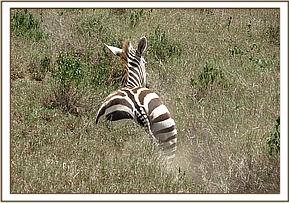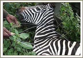 This particular zebra was found with a wire snare around the neck and we decided to rescue it. The wire was removed after it was captured by chemical immobilization by darting from a vehicle. Then the animal was revived and released back to the wild.