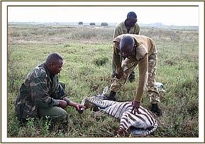Postmortem examination of a female waterbuck in Sopa lodges in Naivasha.