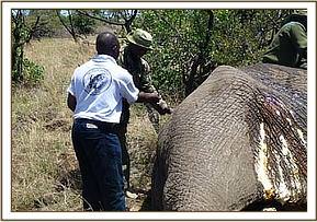 Treatment of a wounded male elephant in Naiboshio conservancy in Masai Mara.