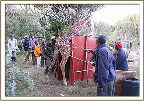 The exercise was carried out during the early morning hours or during the late afternoon when there was less heat. Vehicles were used to locate the herds of giraffes. The right candidate was selected for translocation. Animals aged below 3 years were targeted for this translocation.
