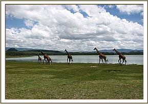 This work had been planned to take place last year but due to logistical problems it was postponed until early April, 2007. The main objective of moving these giraffes from Kedong ranch to Marula Estates ranch was to help restock Marula with Masai giraffe. The ranch has enough vegetation and water that is suitable for the survival of these animals. Before this translocation Marula had 6 giraffes that were introduced there a few years ago. The group of 5 from Kedong was to increase the number and enhance their breeding capacity inorder to promote the conservation of this species in Southern part of Lake Naivasha. The distance between these two ranches was approximately 25 Kilometers and the giraffes were captured and moved without holding them in a boma.